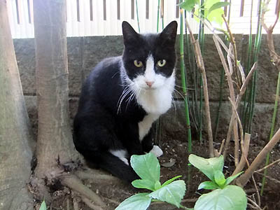 庭のダンちゃん(下写真)が昨日の夜から行方不明。暑くてどこか涼しい場所に避難しているにしても、ご飯だけは食べにくる筈なのに・・ヤマちゃん、ビリーちゃんに聞いても分からず・・・